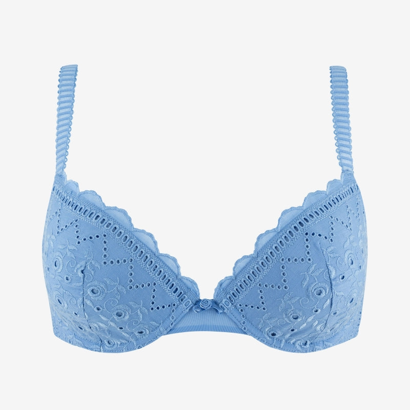 Ce modèle en broderie anglaise bleu lavande, une teinte tendance et apaisante, met en valeur de subtils motifs floraux qui apportent une touche élégante. Les détails soigneusement travaillés viennent sublimer cette ligne, offrant un confort optimal sans compromis sur le style. « Agate » incarne une féminité douce et raffinée, parfaite pour celles qui souhaitent enrichir leur garde-robe avec une pièce alliant élégance et une touche de couleur.