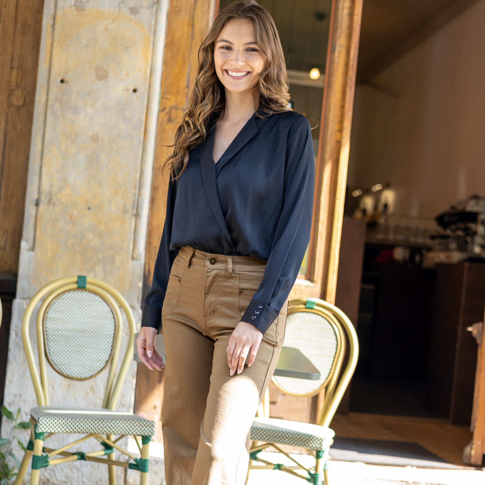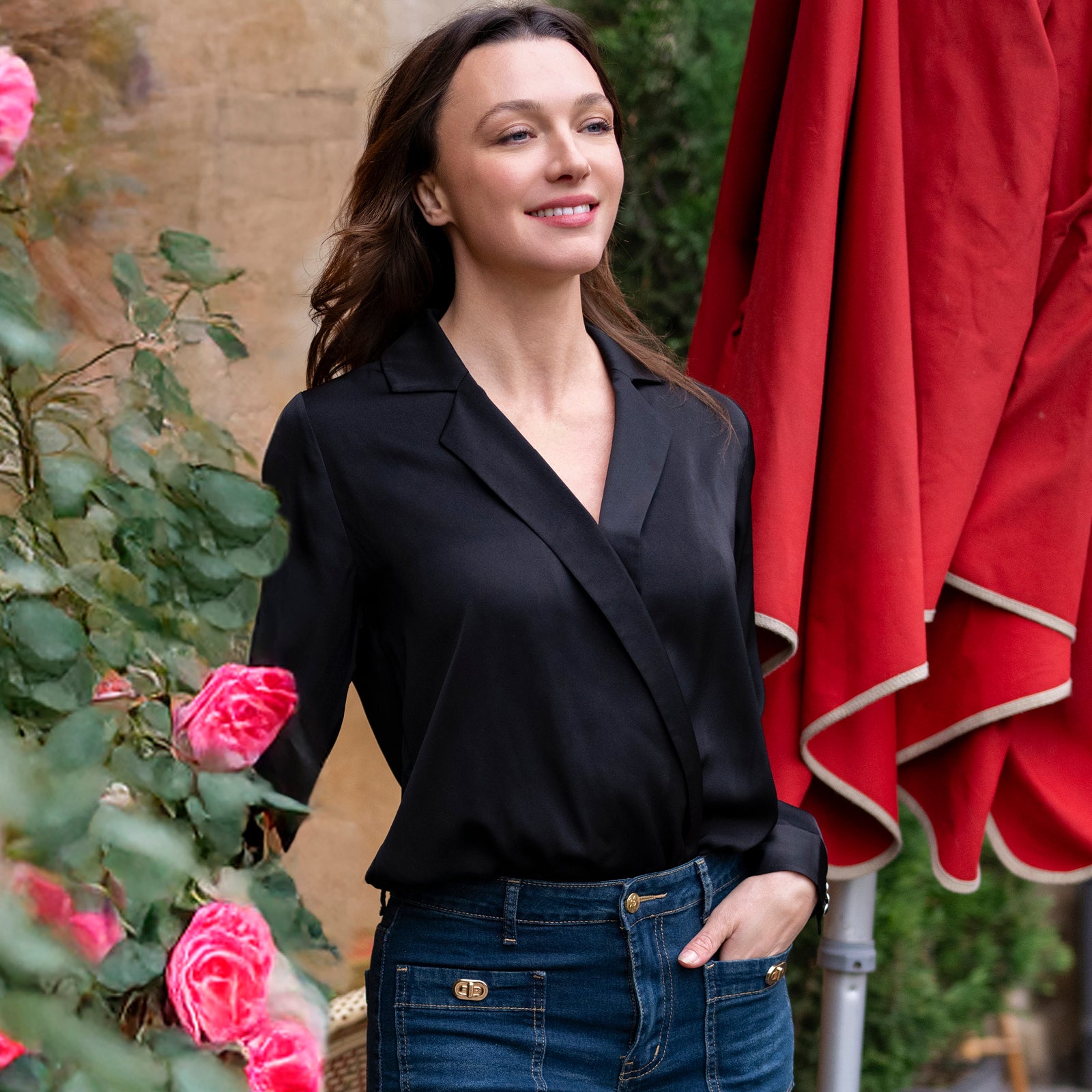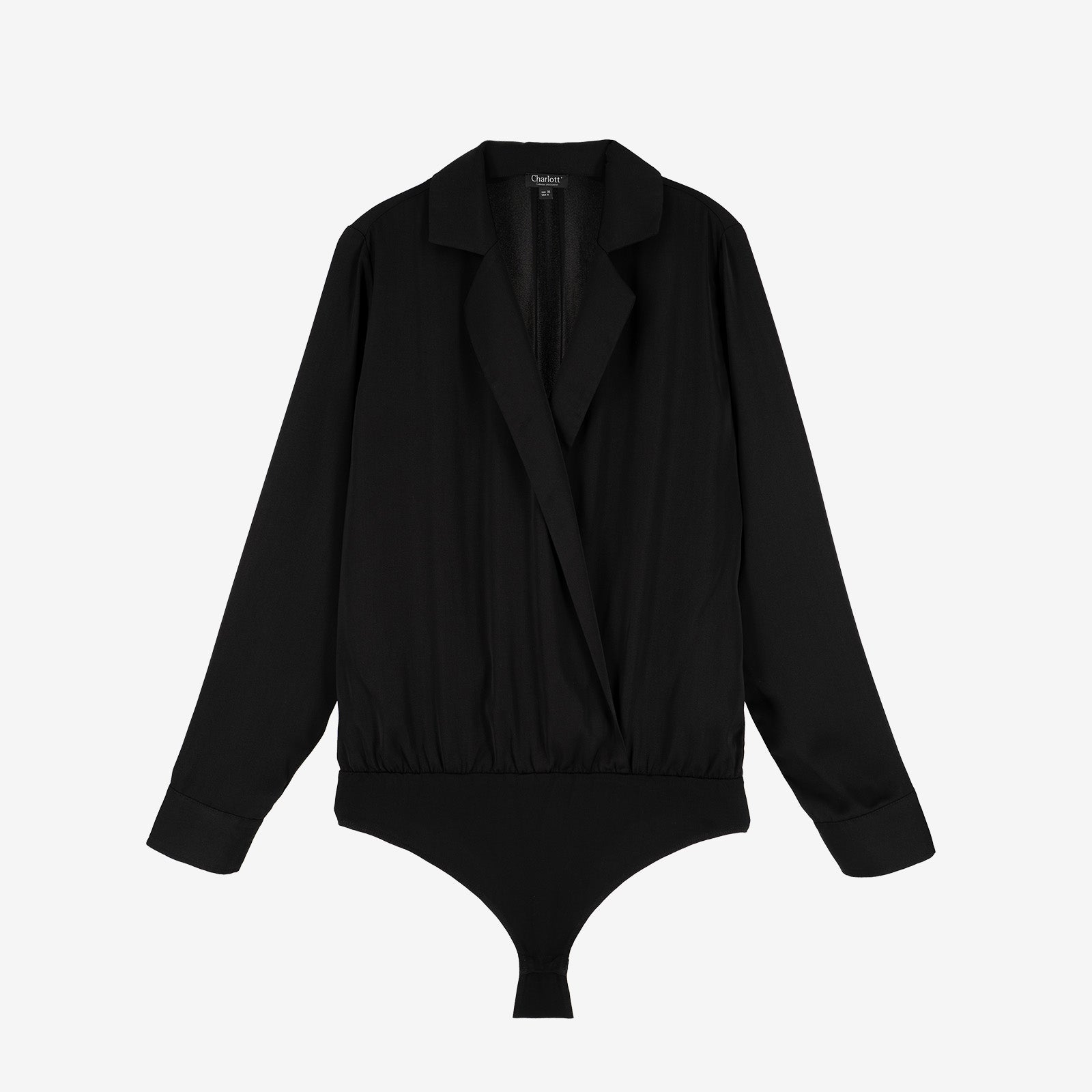 Avec sa matière légèrement satinée et son col tailleur, le body Maxime s'affirme comme un luxe discret et une élégance raffinée