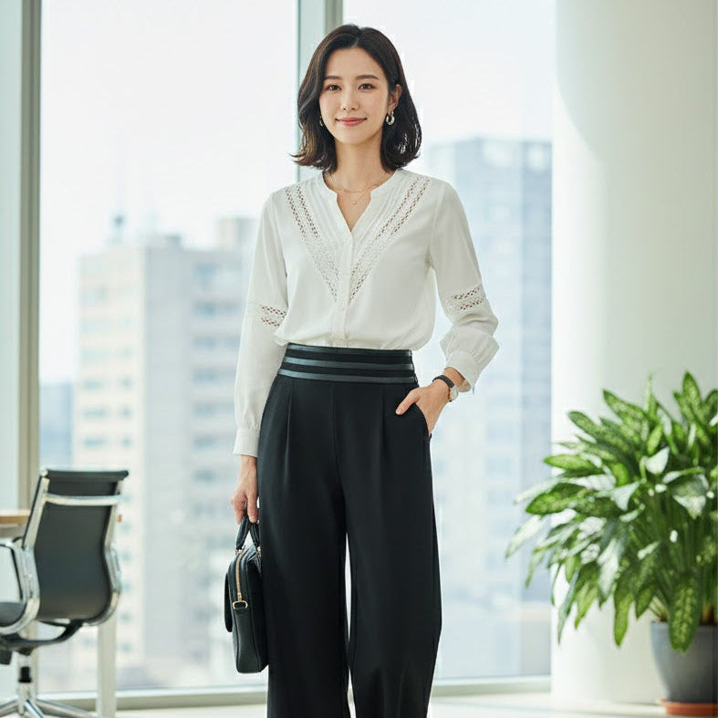 Forme devant dessinée par des plis et un galon ajouré ton sur ton