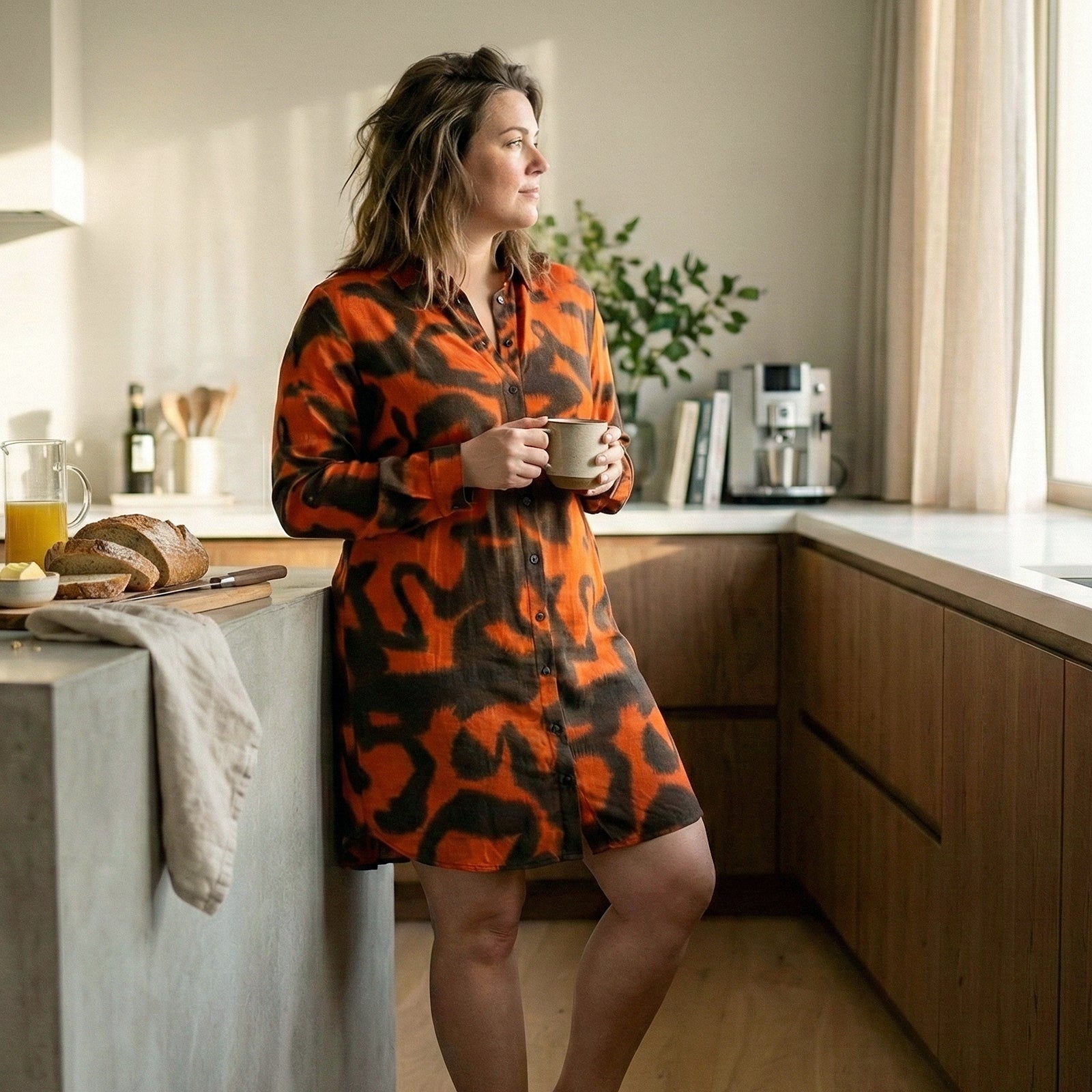 La robe Havana est une chemise longue en crêpe marocain avec un motif Tie & dye à fleurs XXL