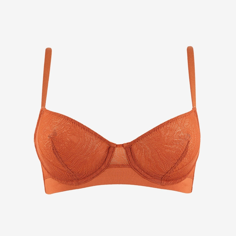 Chaque pièce de la collection « Indiana » est un hymne à la modernité, une symphonie de lignes fluides et de coupes innovantes qui célèbrent la diversité et la beauté du corps féminin. Cette ligne, marie avec audace la sensualité de la dentelle zébrée à la chaleur envoûtante de la couleur terracotta.