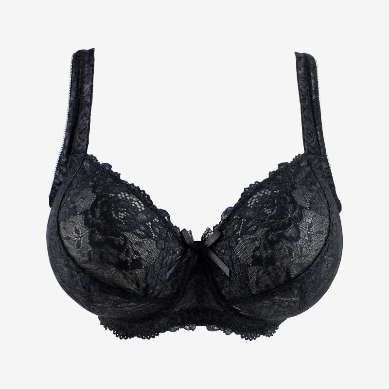 Bas bonnet dentelle doublée rigide, demi-lune en tulle rigide pour soutenir et mettre en forme le volume du sein.