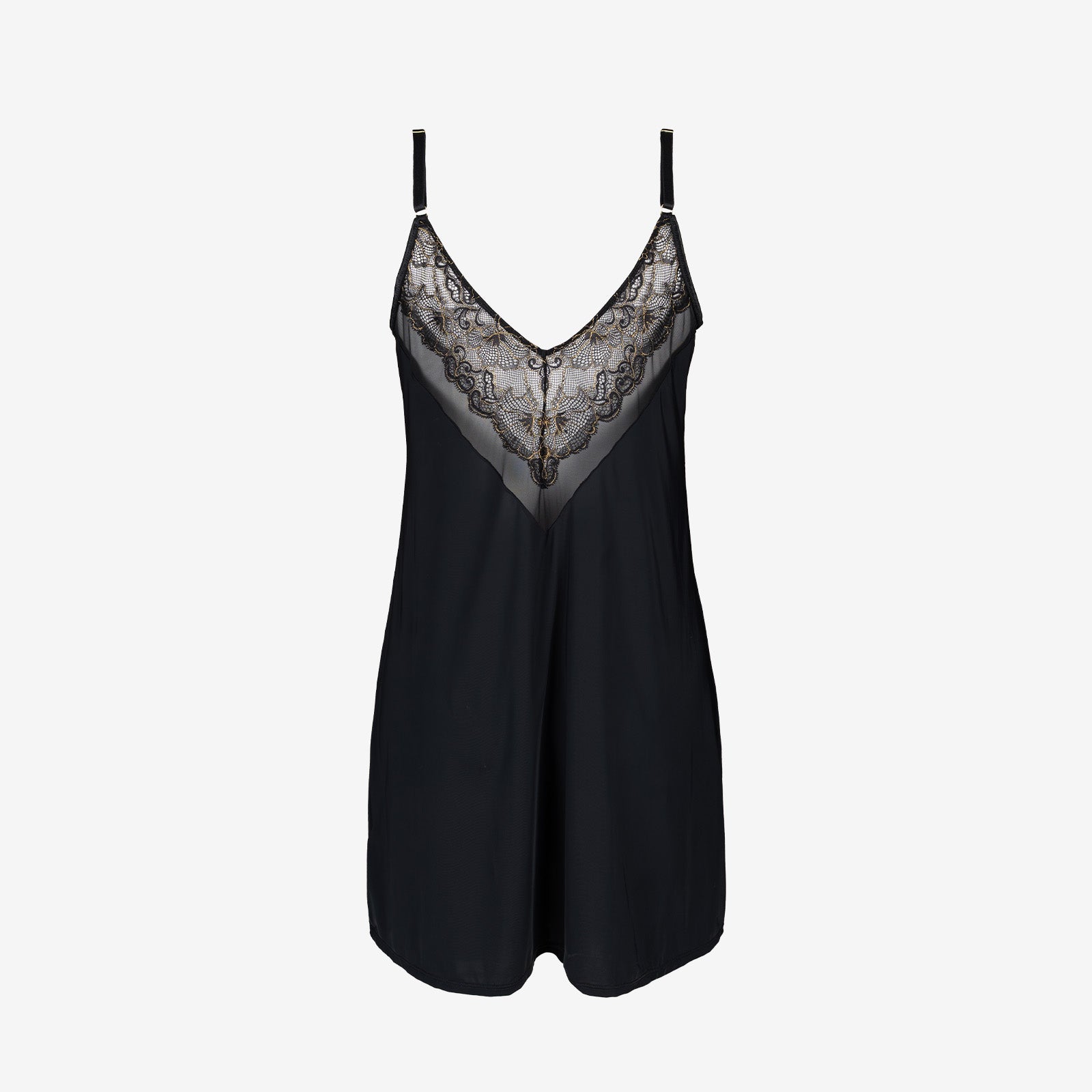 Décolleté dos plongeant en tulle lycra souligné par un empiècement en dentelle