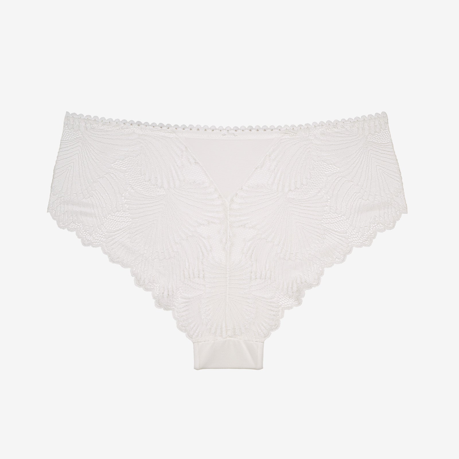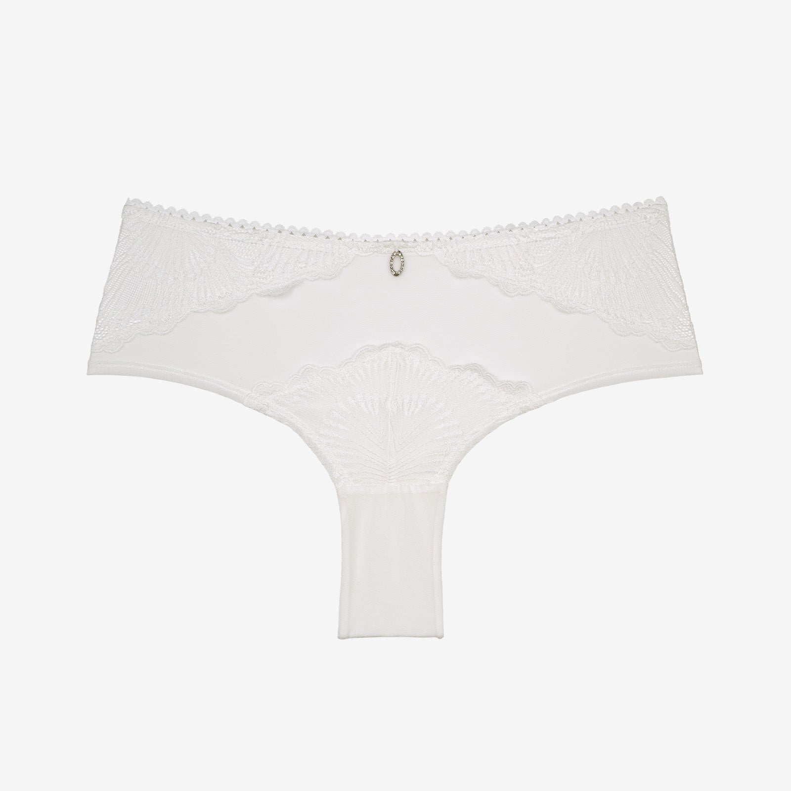 Cette collection allie la délicatesse de la dentelle et la douceur de la microfibre Blanche nacrée : une harmonie parfaite entre sophistication et confort. Ces motifs délicats en lignes sinueuses sont une ode à la féminité et au raffinement, le tout est sublimé par un détail étincelant, un bijou pendentif argenté à strass.