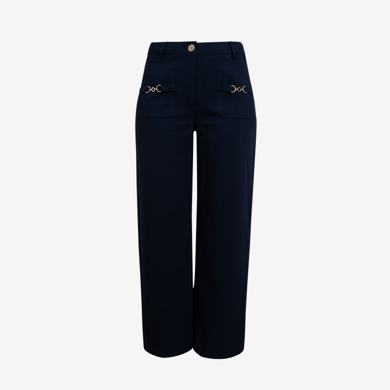 Les poches plaquées ornées de chaînes bijoux ajoutent une touche de sophistication subtile